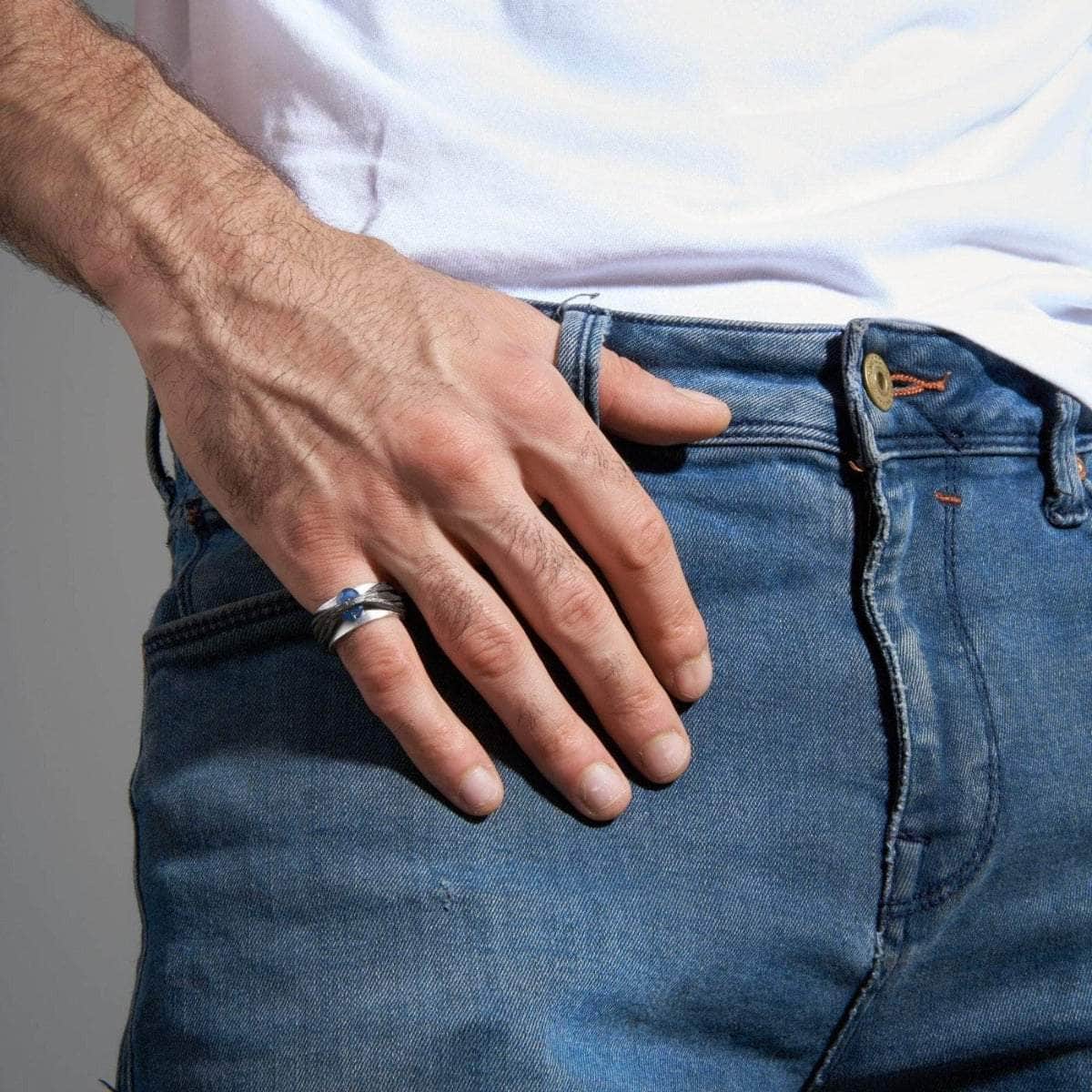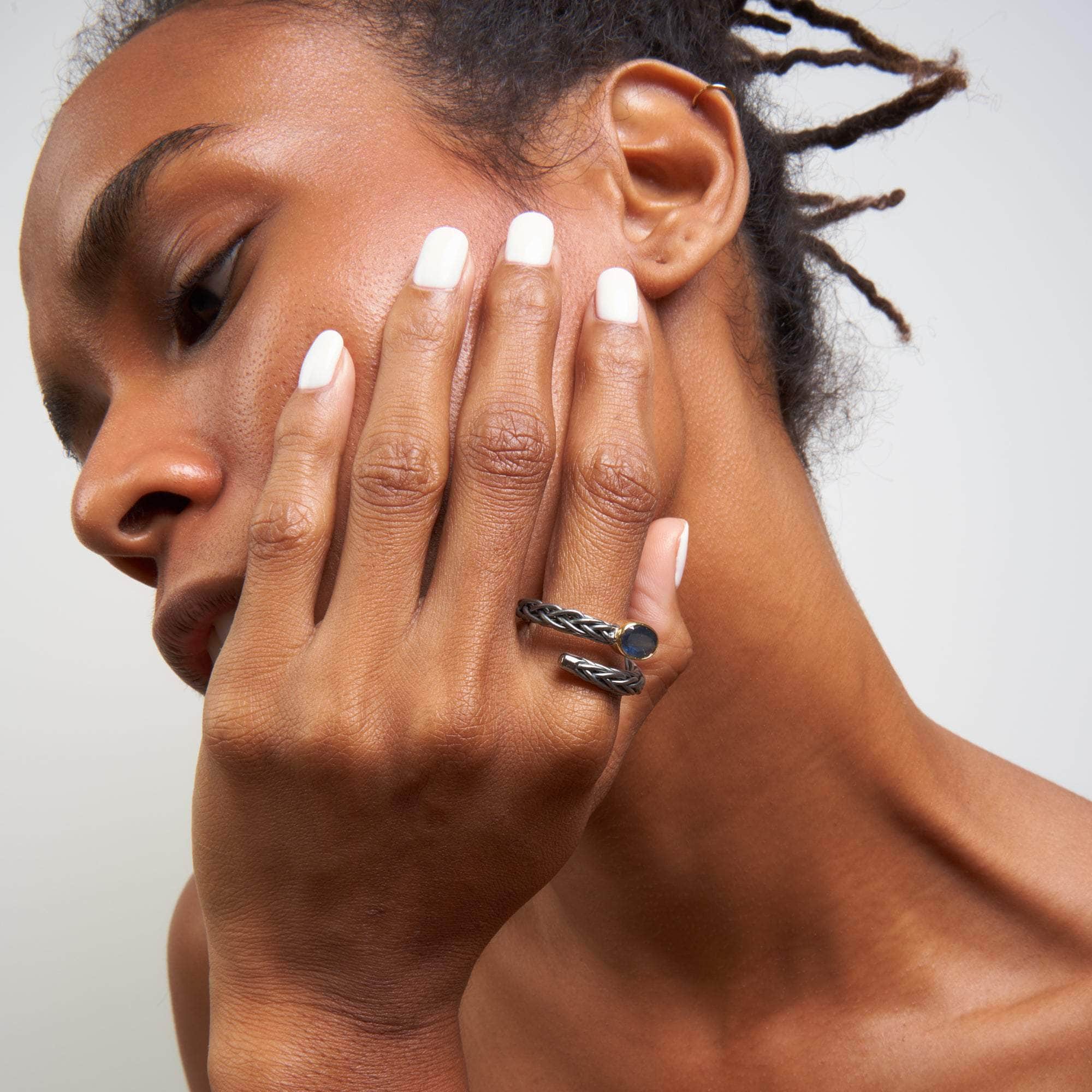 Oren Unisex Woven 925 Silver Ring with Natural Dark-Blue Sapphire