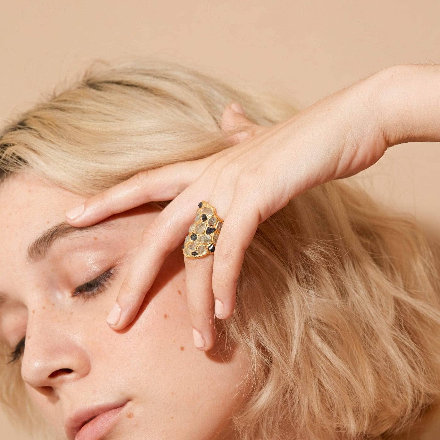 Asherah Rough Citrine and Mixed Sapphire Ring