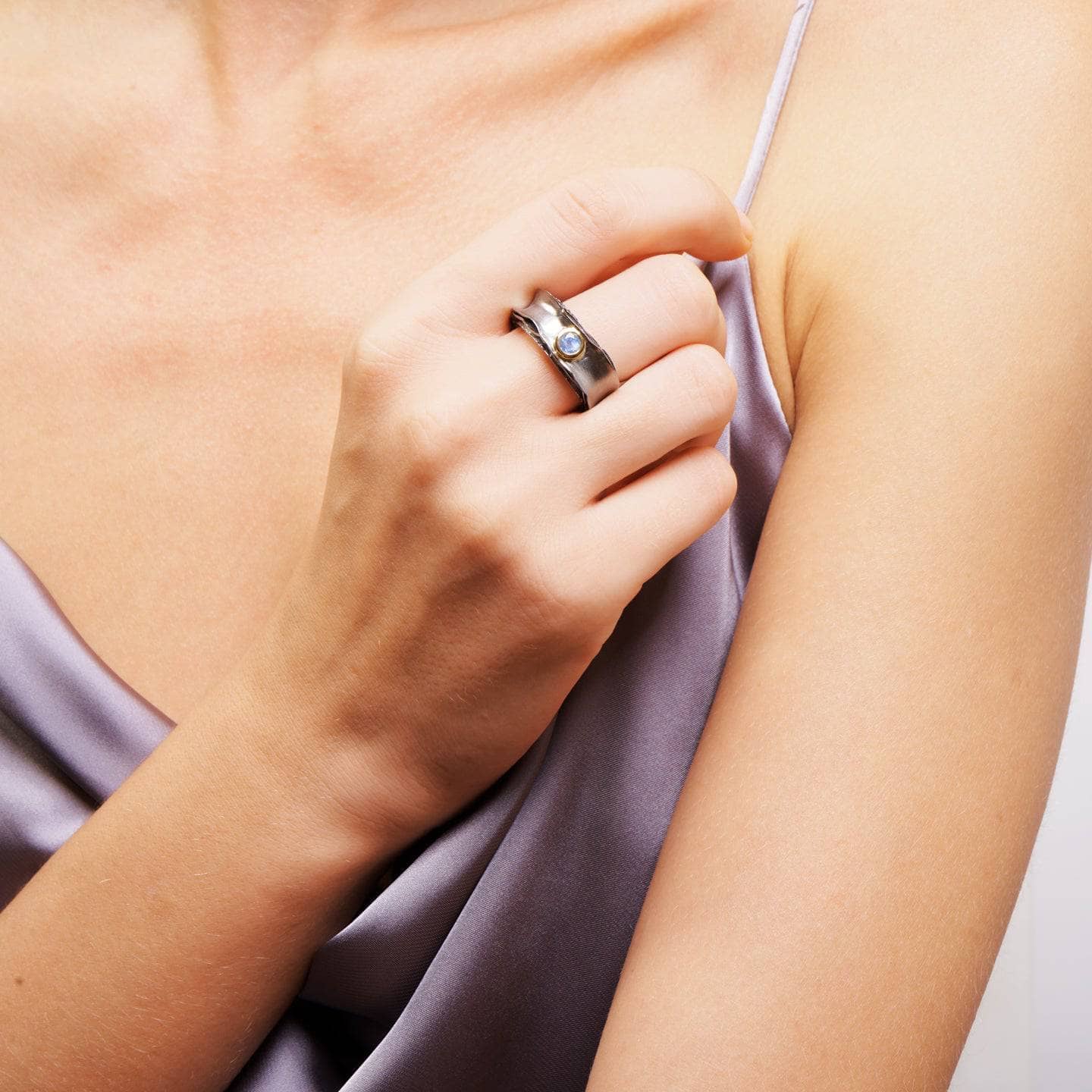 Aqualore Silver Ring with Pearl & Blue Sapphire in Black Rhodium & Gold