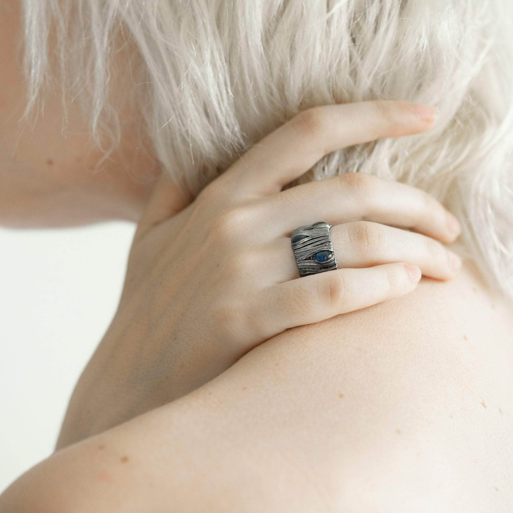 Aoki Blue Sapphire Ring (Black Rhodium)