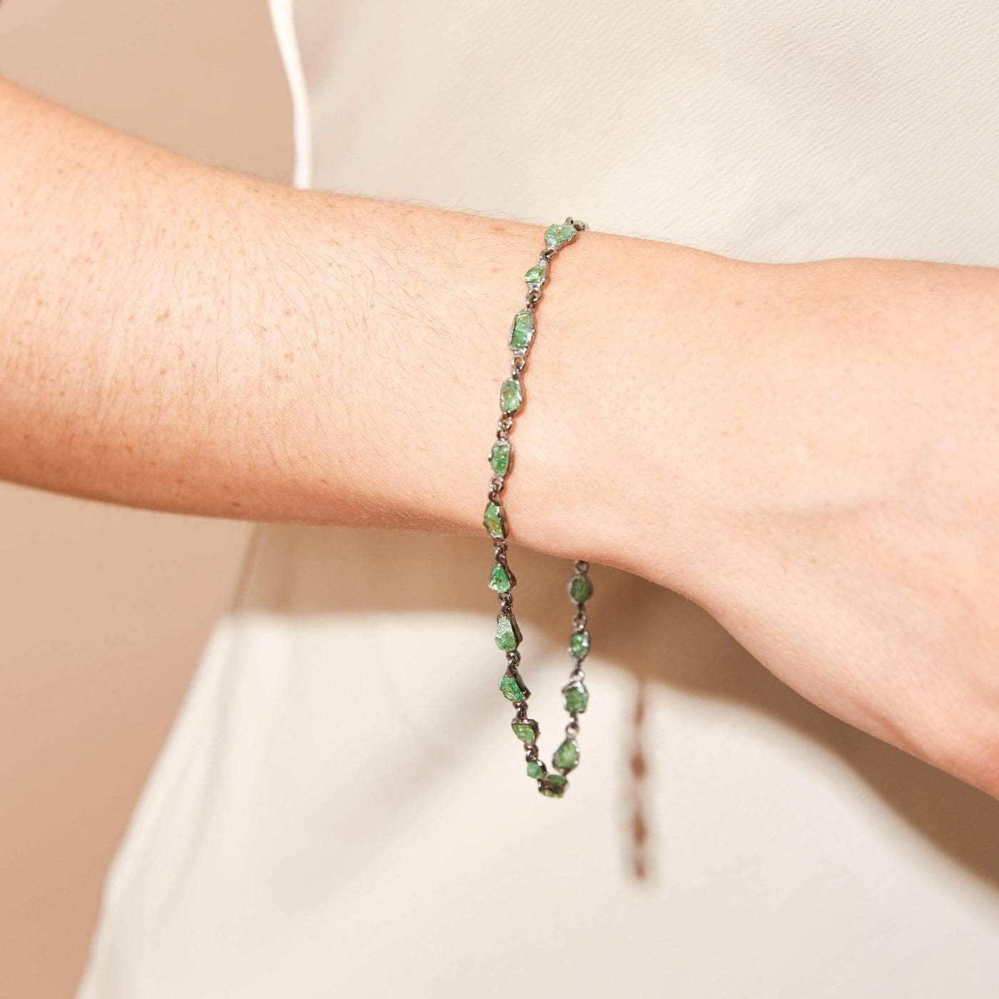 Orphic Natural Rough Tsavorite Bracelet in Black Rhodium Plated Silver