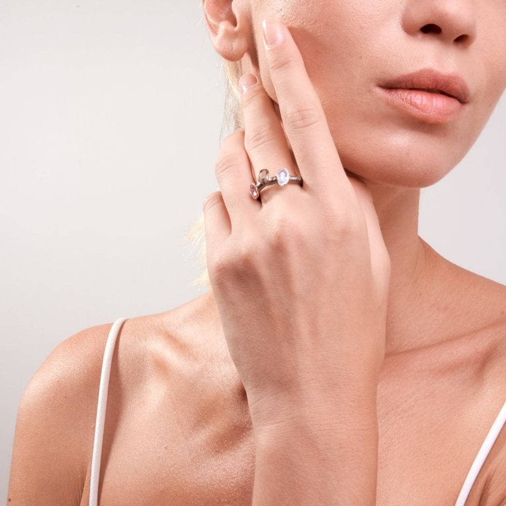 Sarin Raw White Sapphire Ring – Silver & White Rhodium