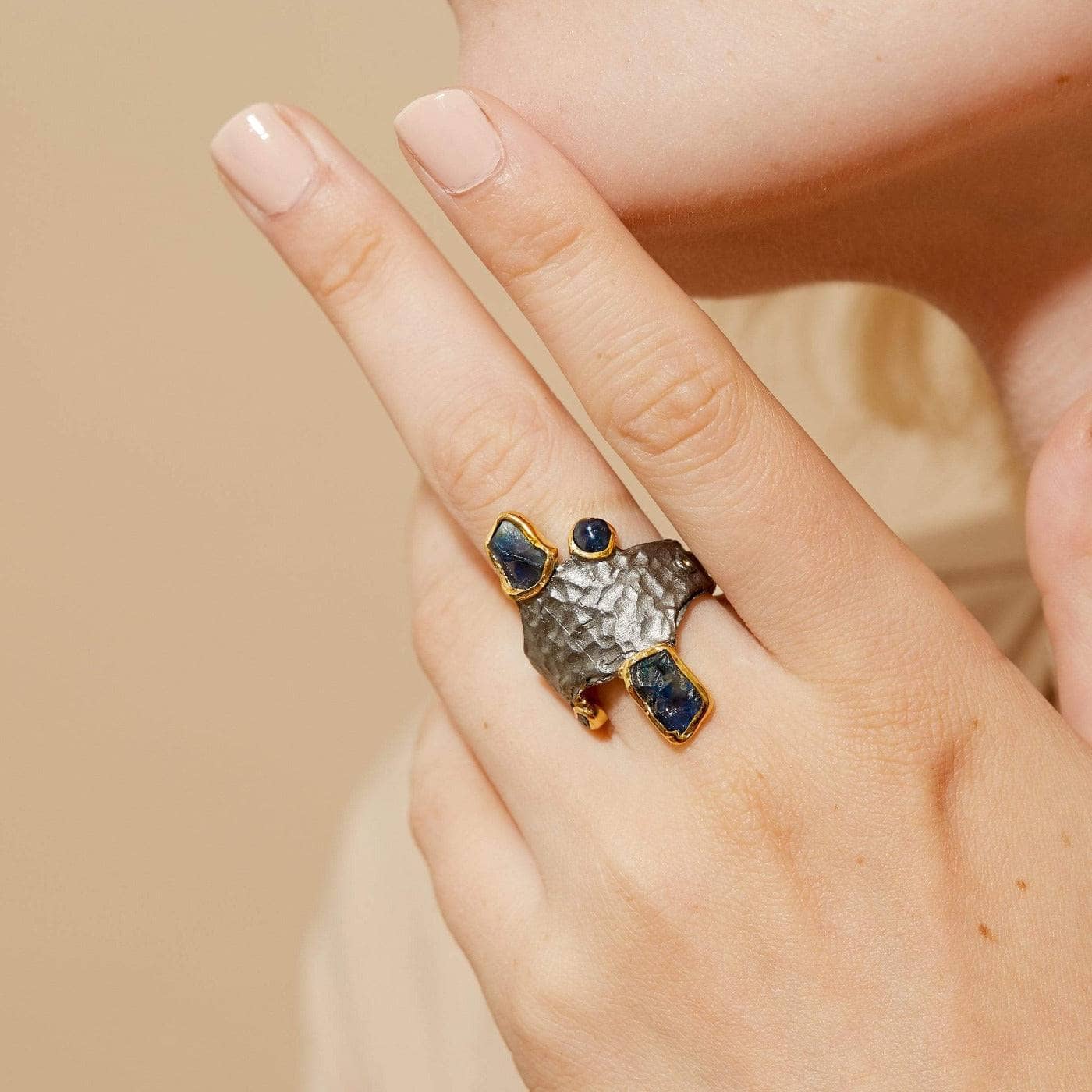 Stratu Natural Mixed Rough Gemstones Layered 925 Sterling Silver Ring