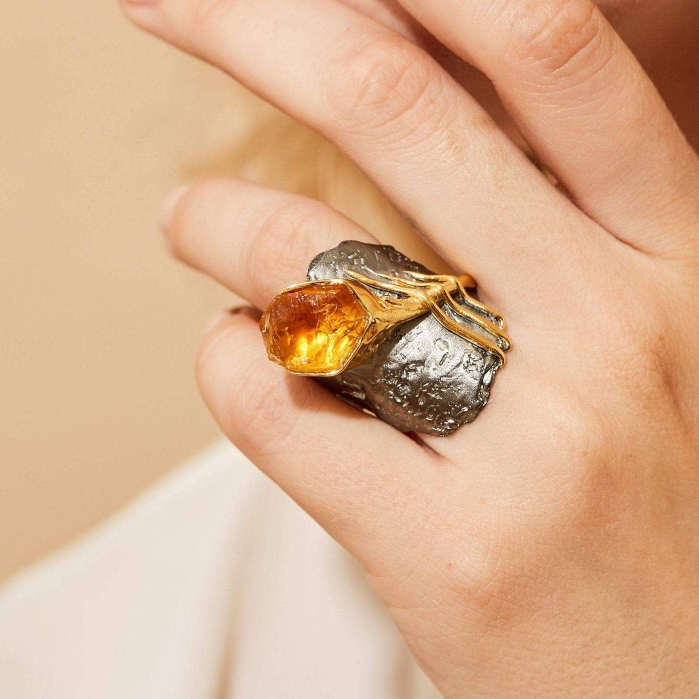 Vissa Iconic Design Natural Raw Spessartine Ring in 925 Sterling Silver (18K Gold and White-Rhodium Plated)