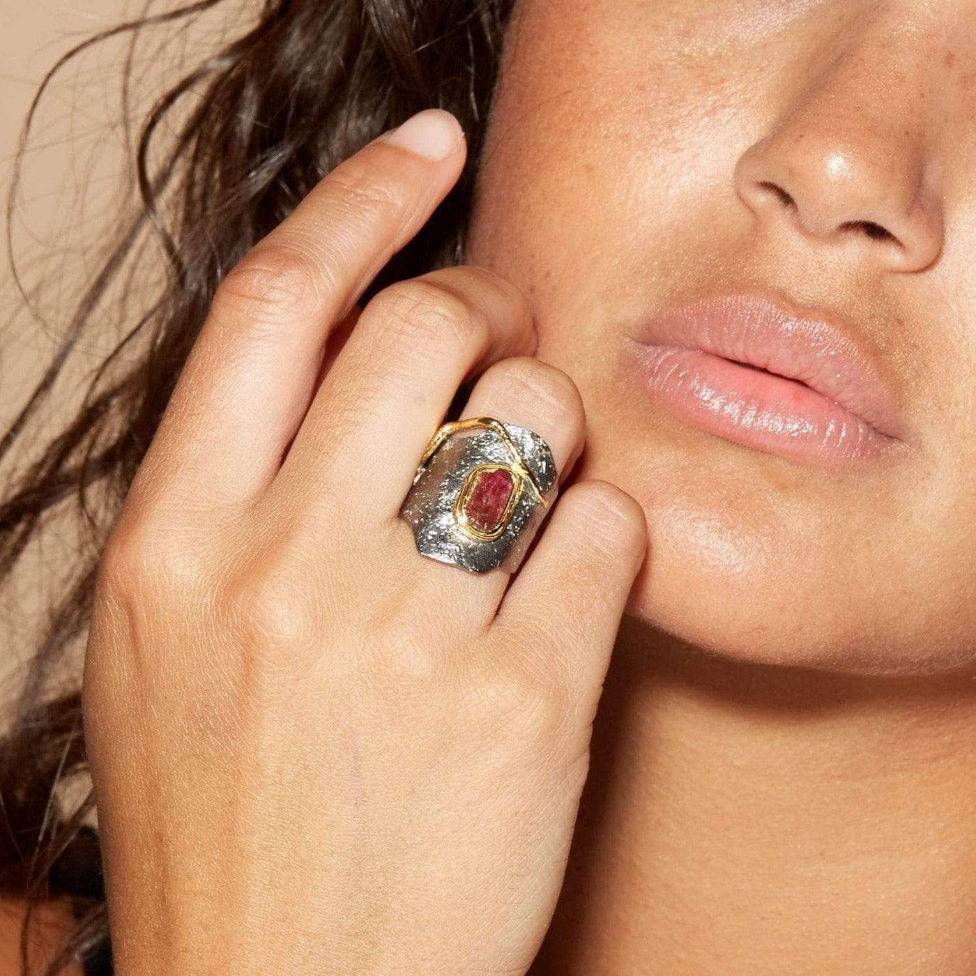 Tensenn Statement Silver Ring with Baroque Pearl & Rhodolite