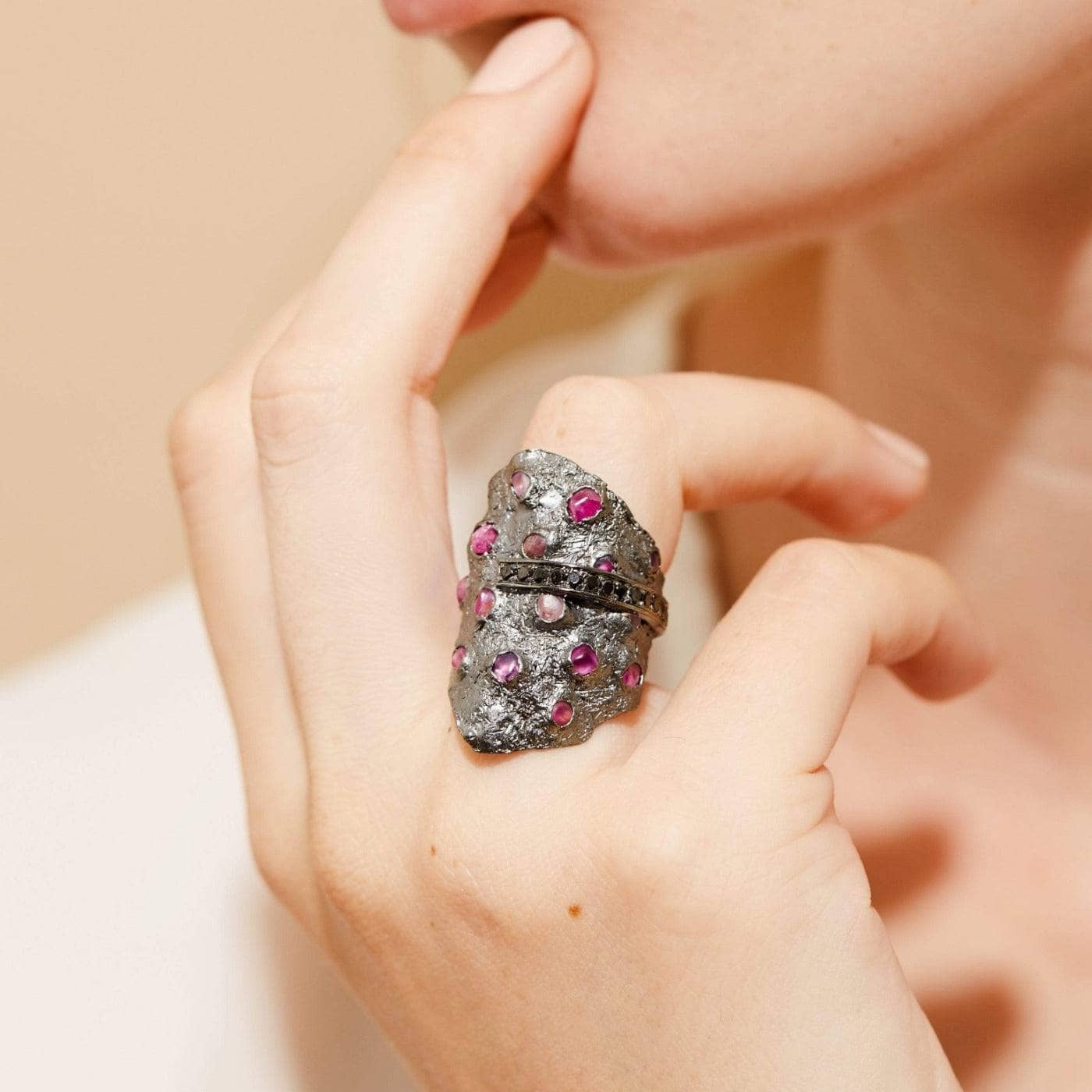 Rhonia Natural Raw Ruby Ring in Textured Sterling Silver