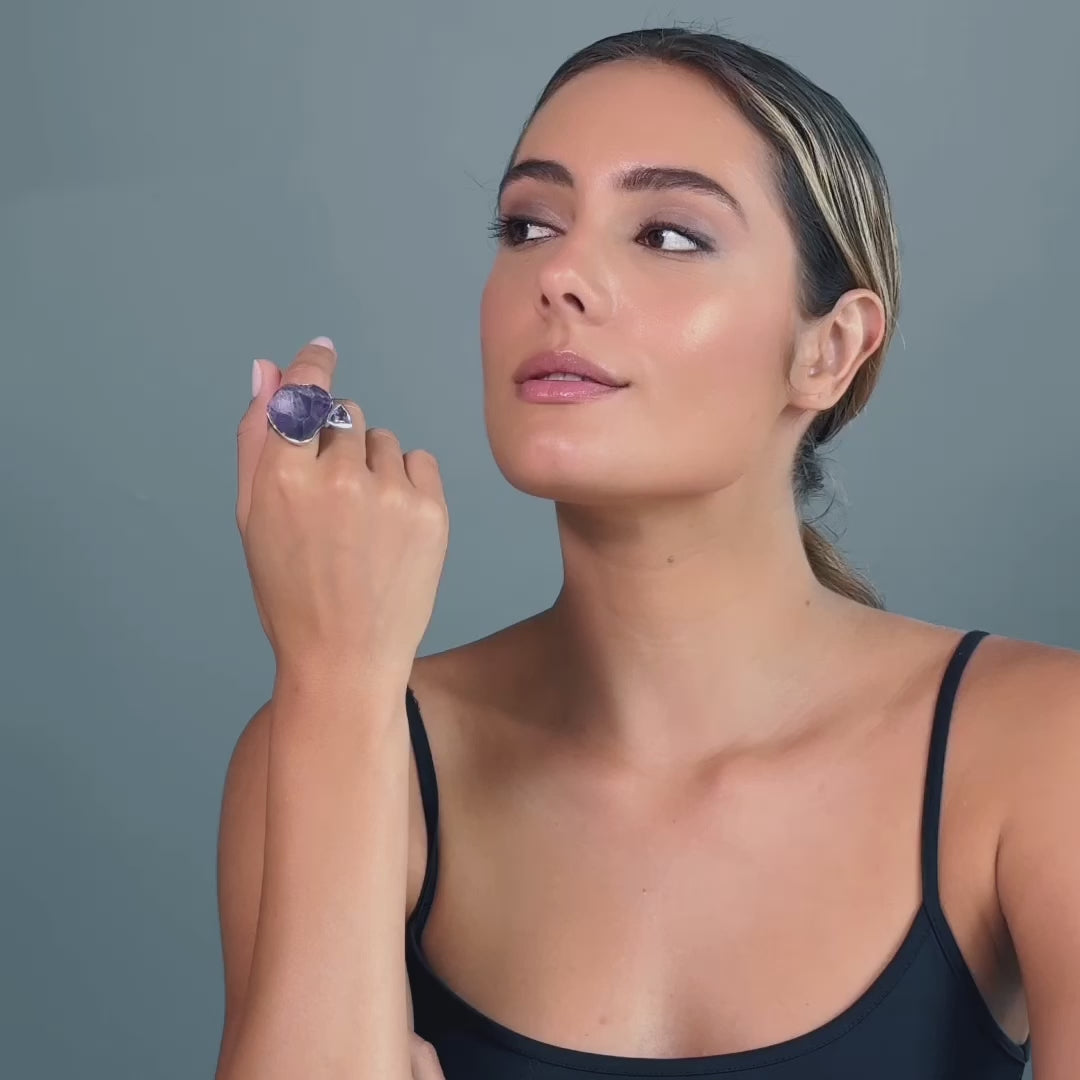 Persephone Rough Amethyst and Amethyst Ring