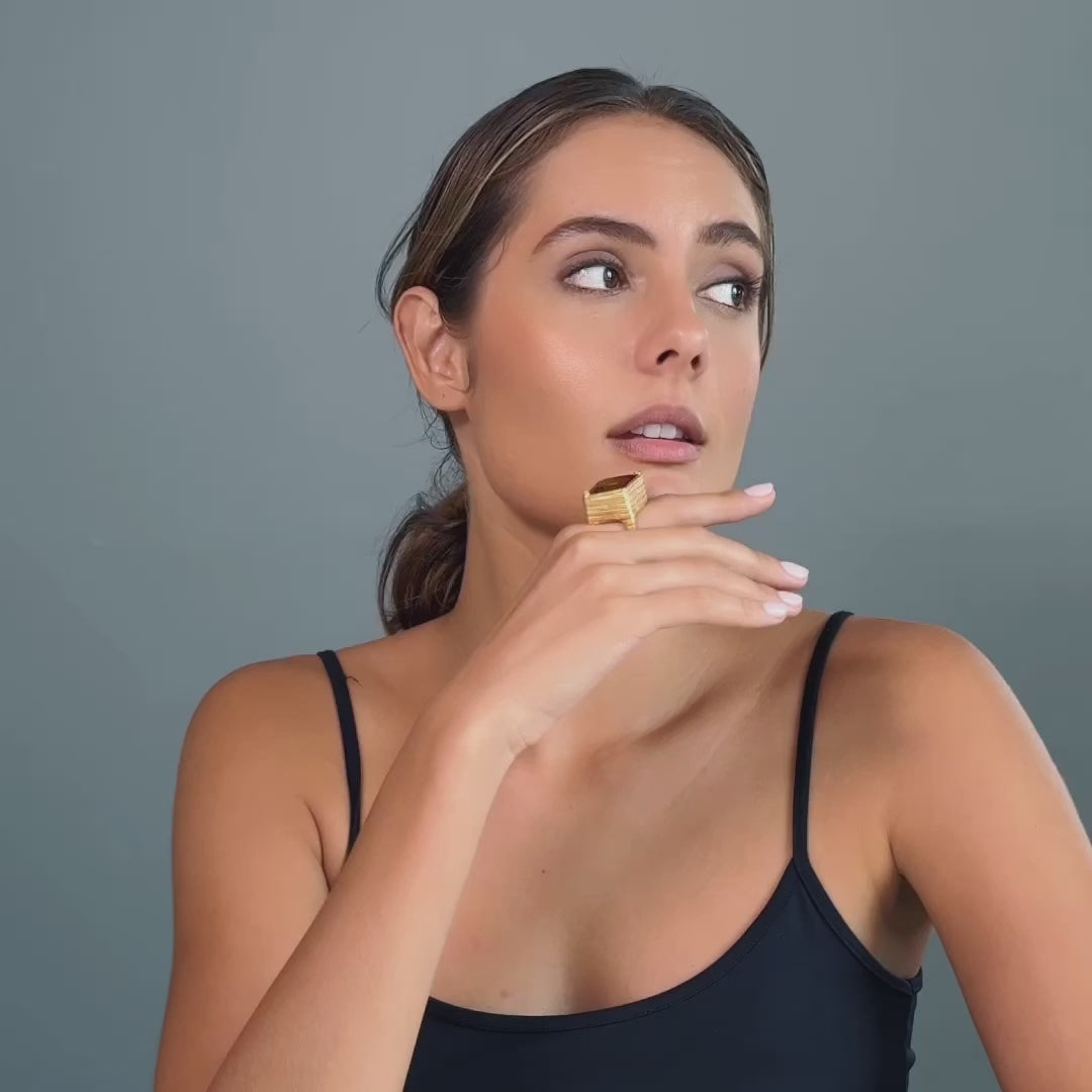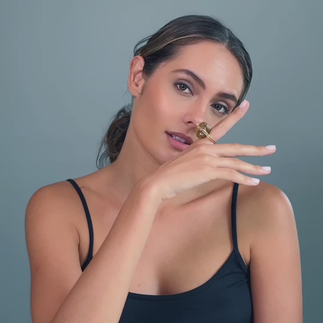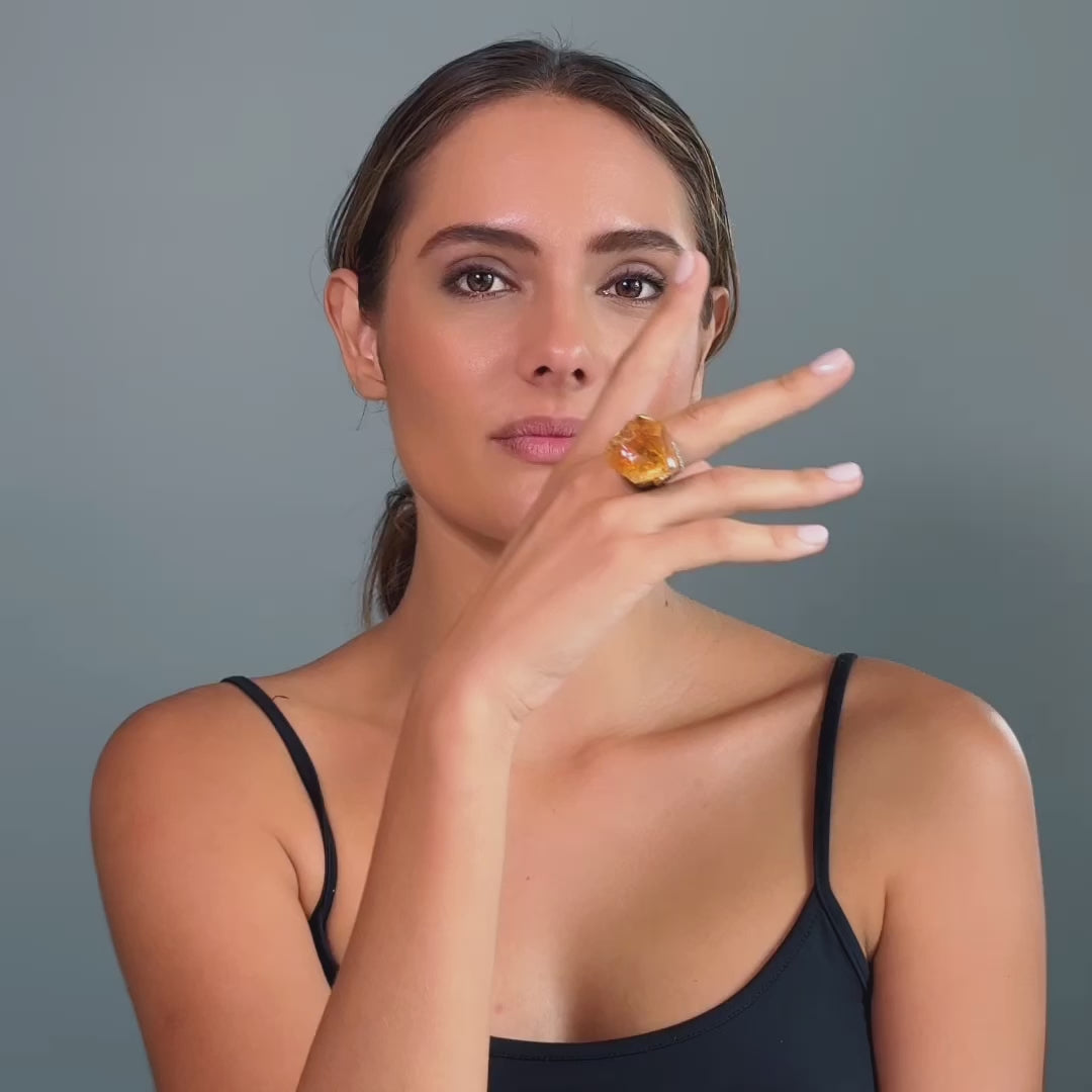 Errai Singular Statement Ring with Natural Rough Citrine in Gold-Plated Silver