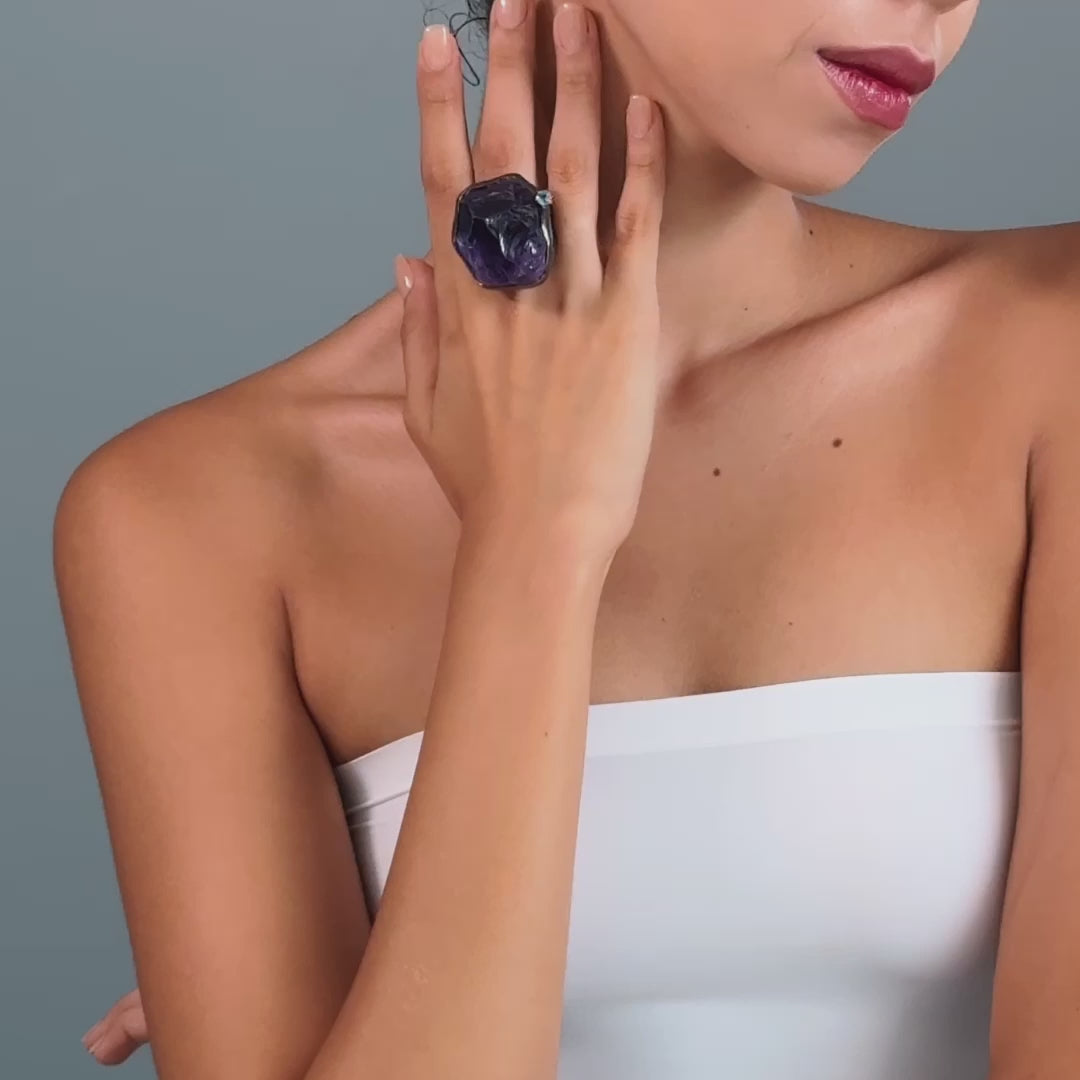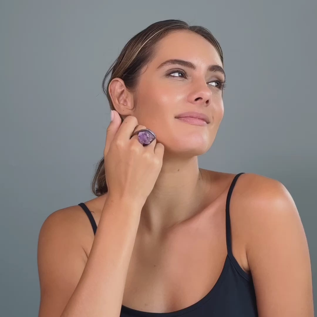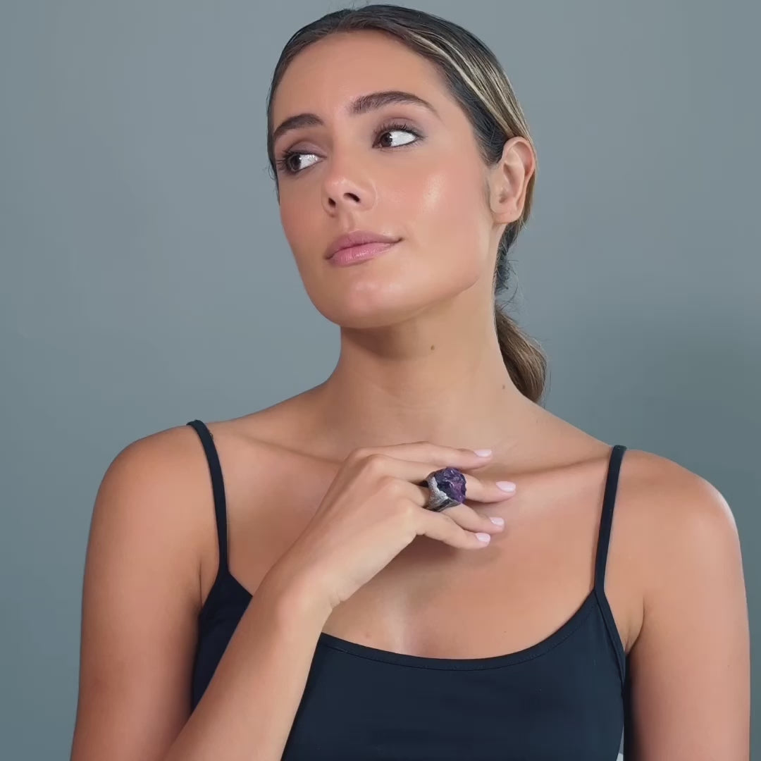 Calen Singular Edition Amethyst & Black Spinel Statement Ring in 925 Silver