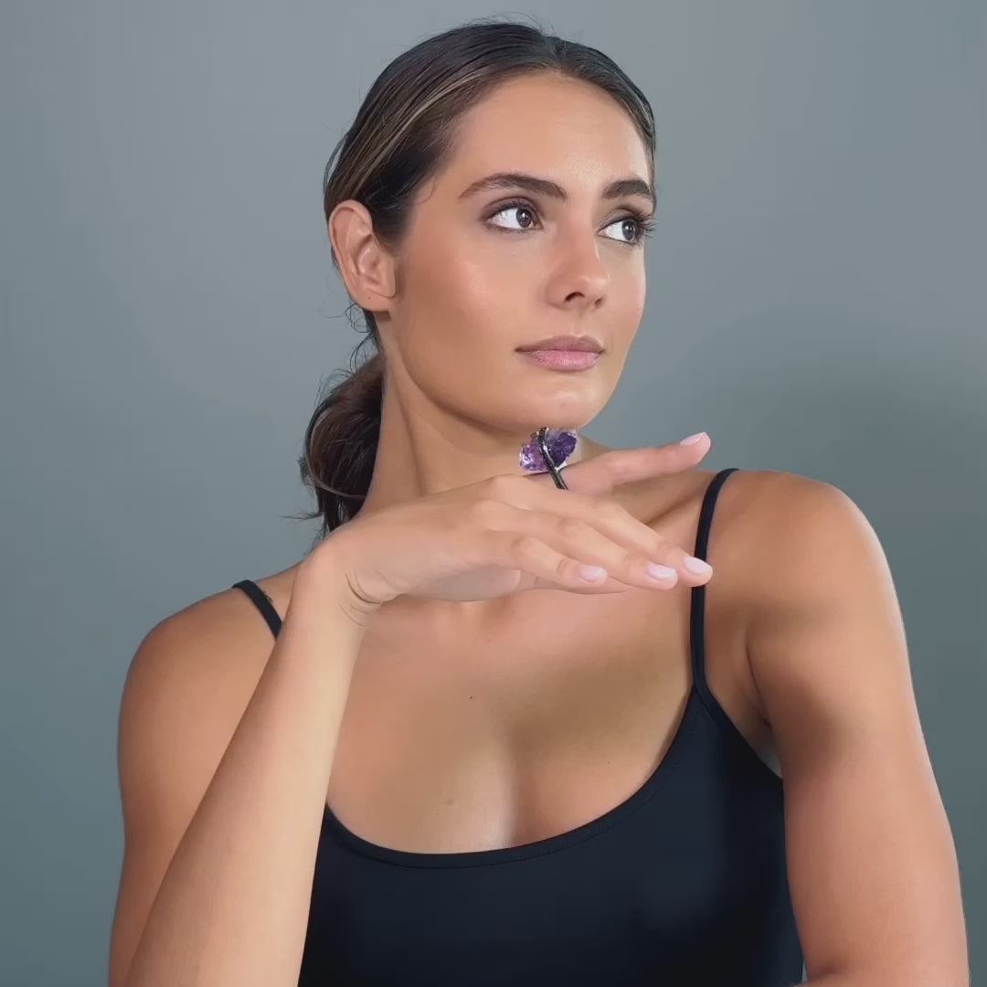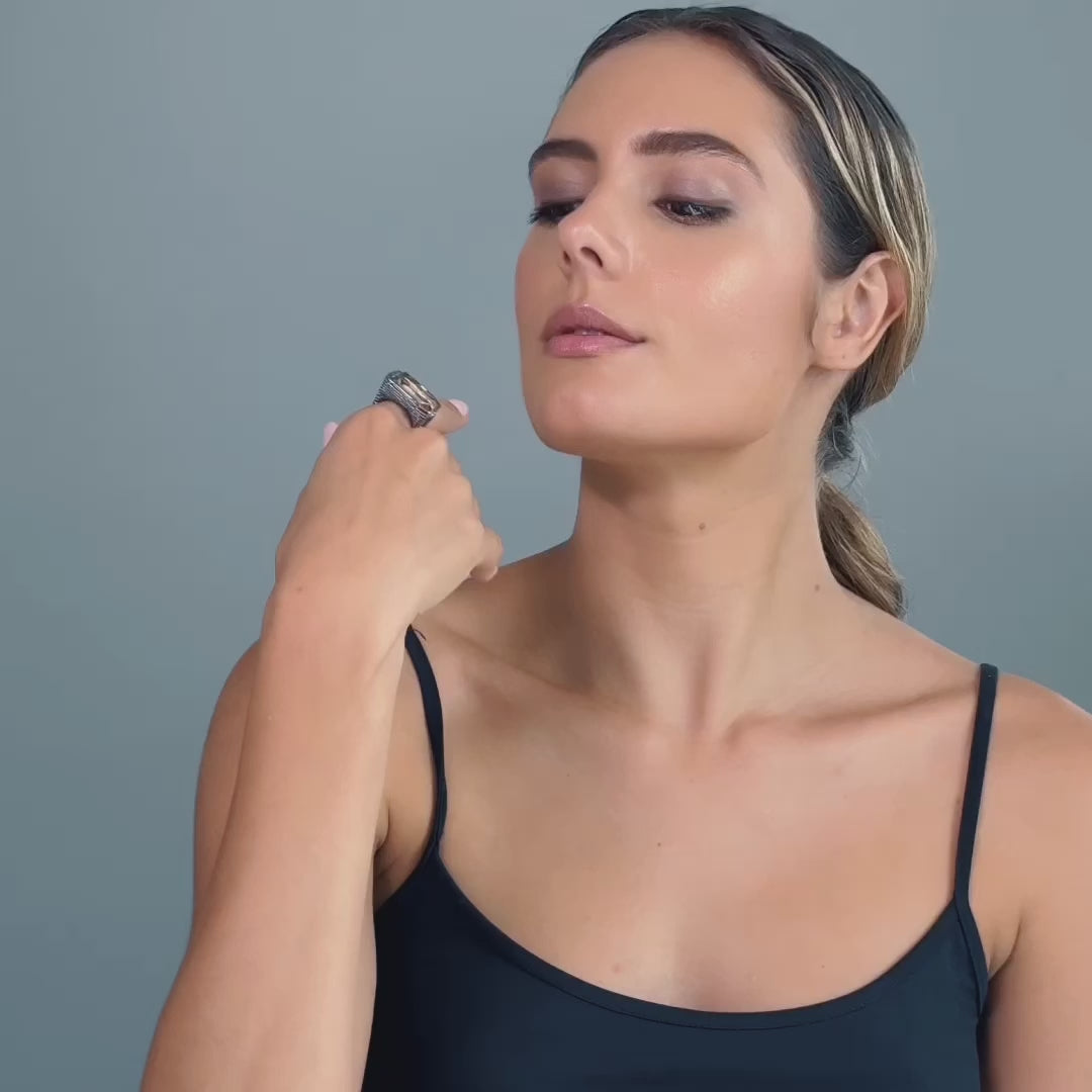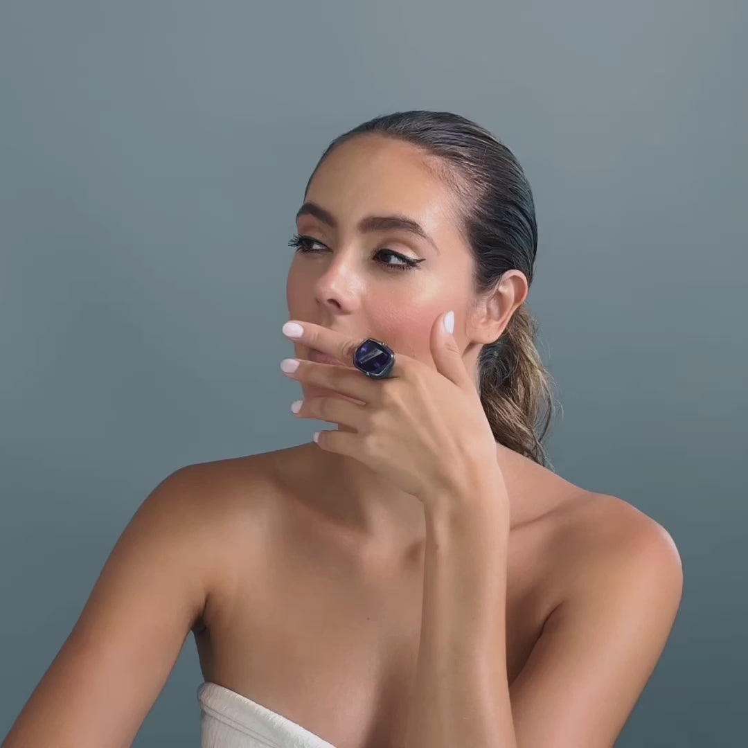 Calen Singular Edition Amethyst & Black Spinel Statement Ring in 925 Silver