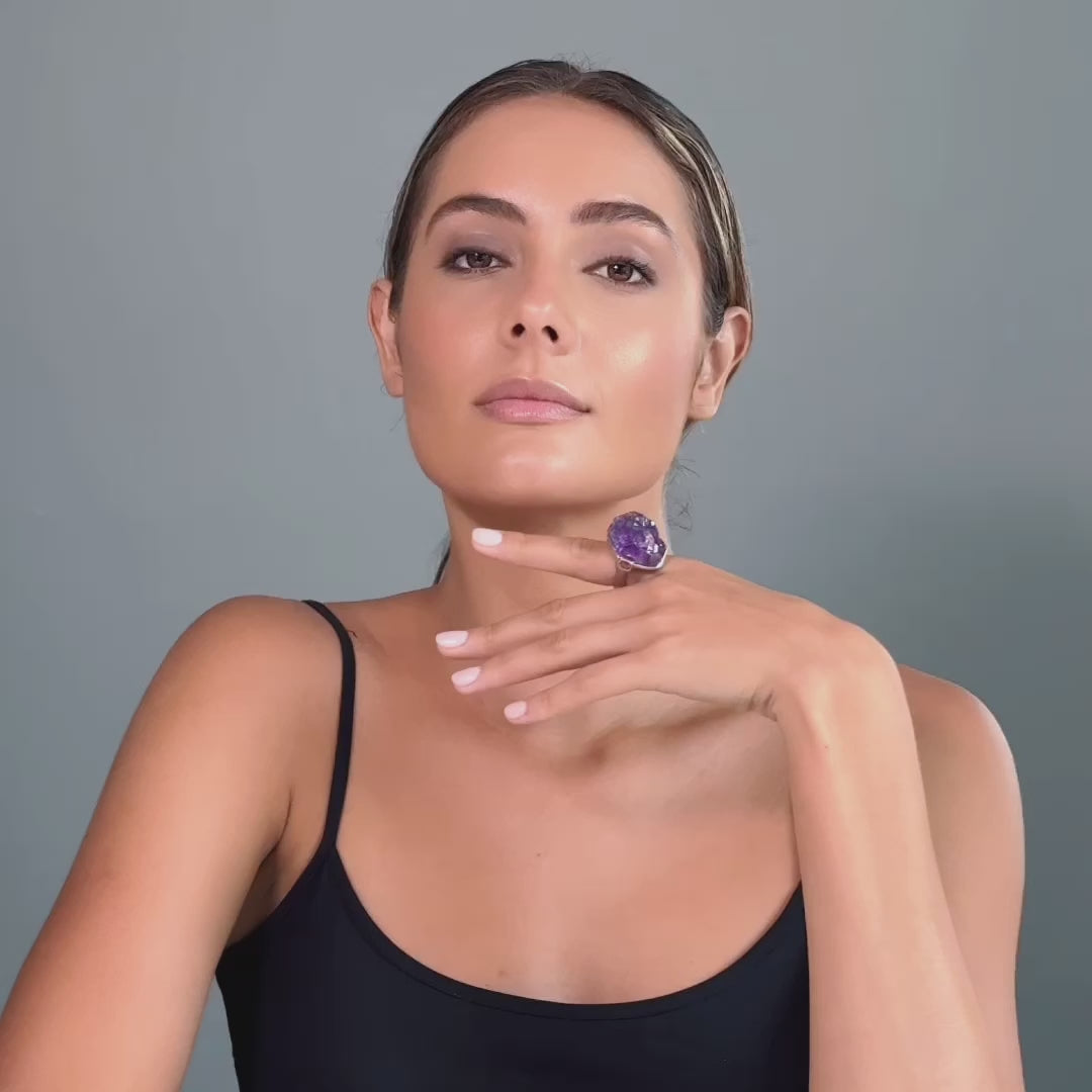 Yed Signature Design 925 Silver Ring with Raw and Cut Amethyst