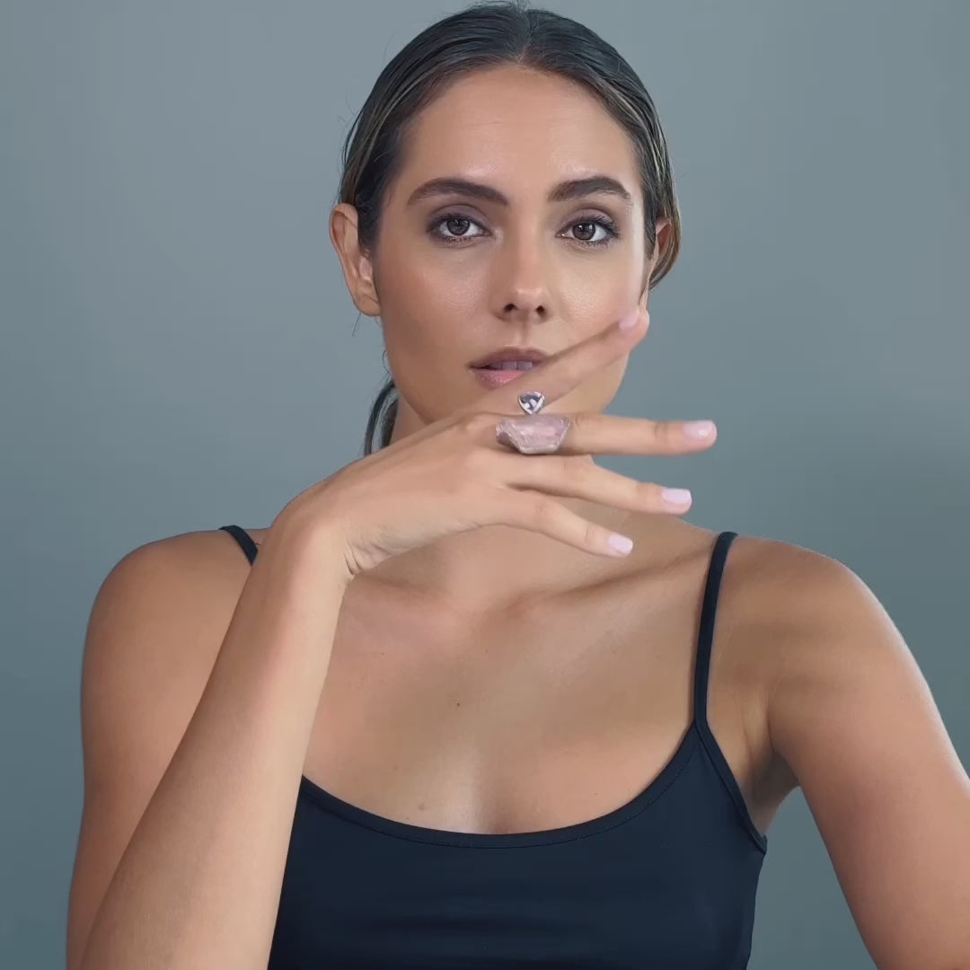 Nihal Rough Rose Quartz and Amethyst Ring