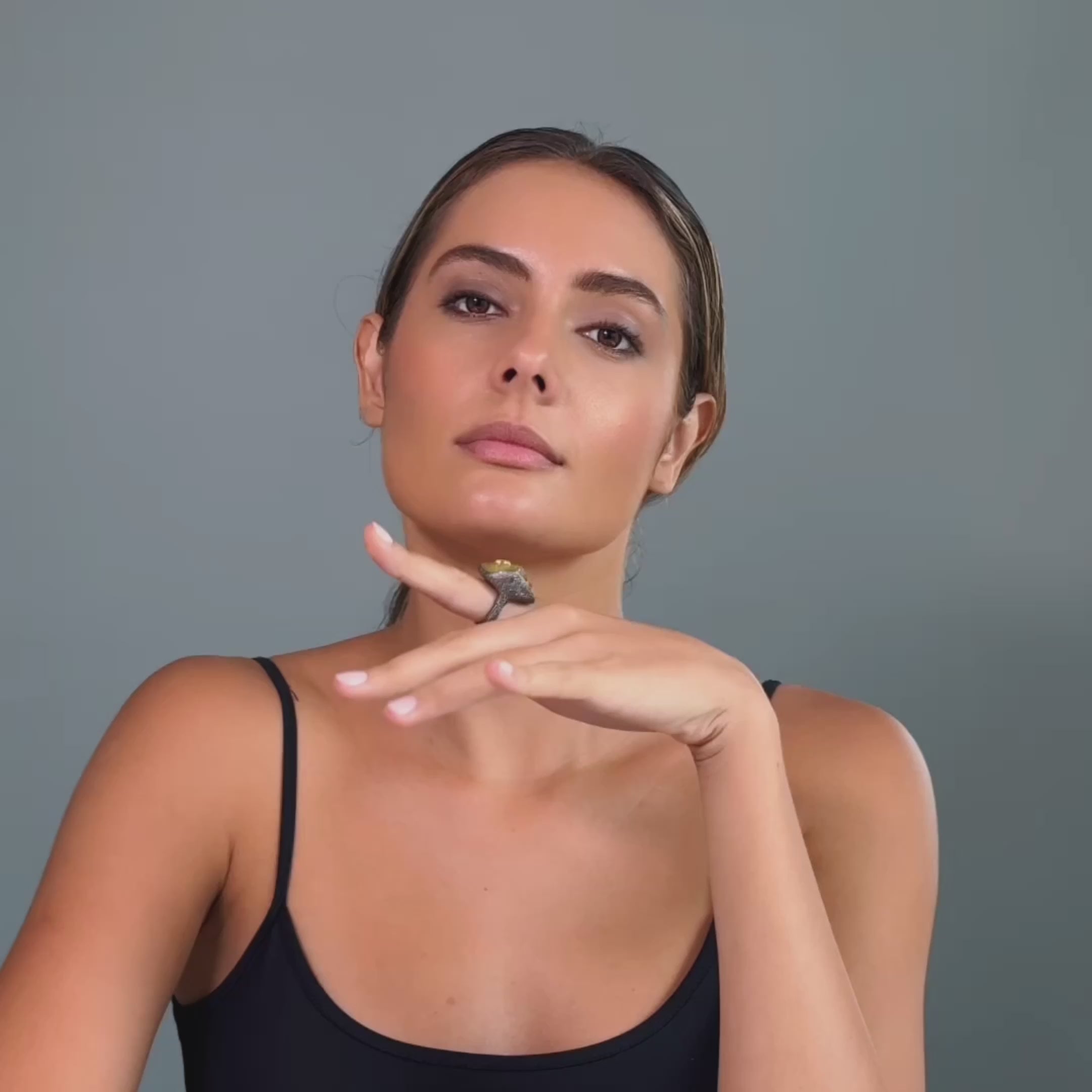 Zaniah Singular Edition Silver Ring with Rough Citrine & Rhodolite