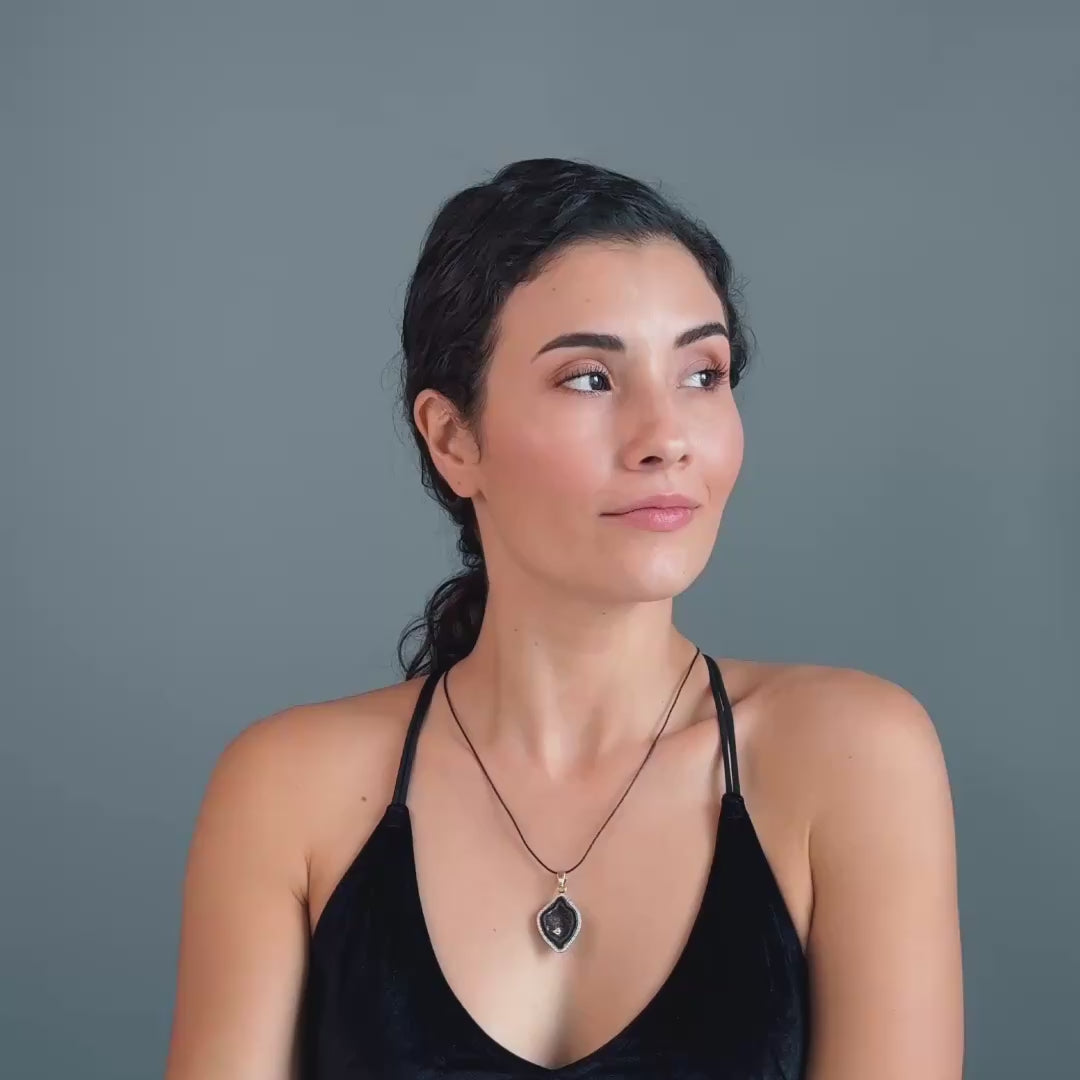 Lustre Half Geode Pendant with Сentral Diamond and Diamond Halo in 14K Gold