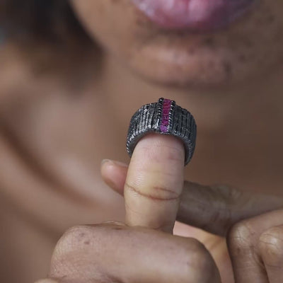 Orpheus Singular Edition Raw Ruby Egoist Ring in Black Ruthenium-Plated Sterling Silver