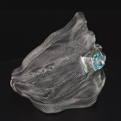 Light on the wrist and easy to wear, this bracelet is made from silver and titanium mesh with a smooth, textile-like feel. The structure is soft and springy, designed to move naturally with the body while staying strong and reliable. A princess-cut natural blue topaz sits quietly at the center, adding a clear, calm note to the flowing metal surface. The contrast is gentle rather than sharp, keeping the overall look clean and relaxed. Ami is a limited edition piece, created for those who prefer jewelry that feels natural, comfortable, and quietly distinctive. PLEASE NOTE: Natural gemstones may show slight variations in color and appearance. Color may differ under various lighting conditions; model photos provide the closest representation.
