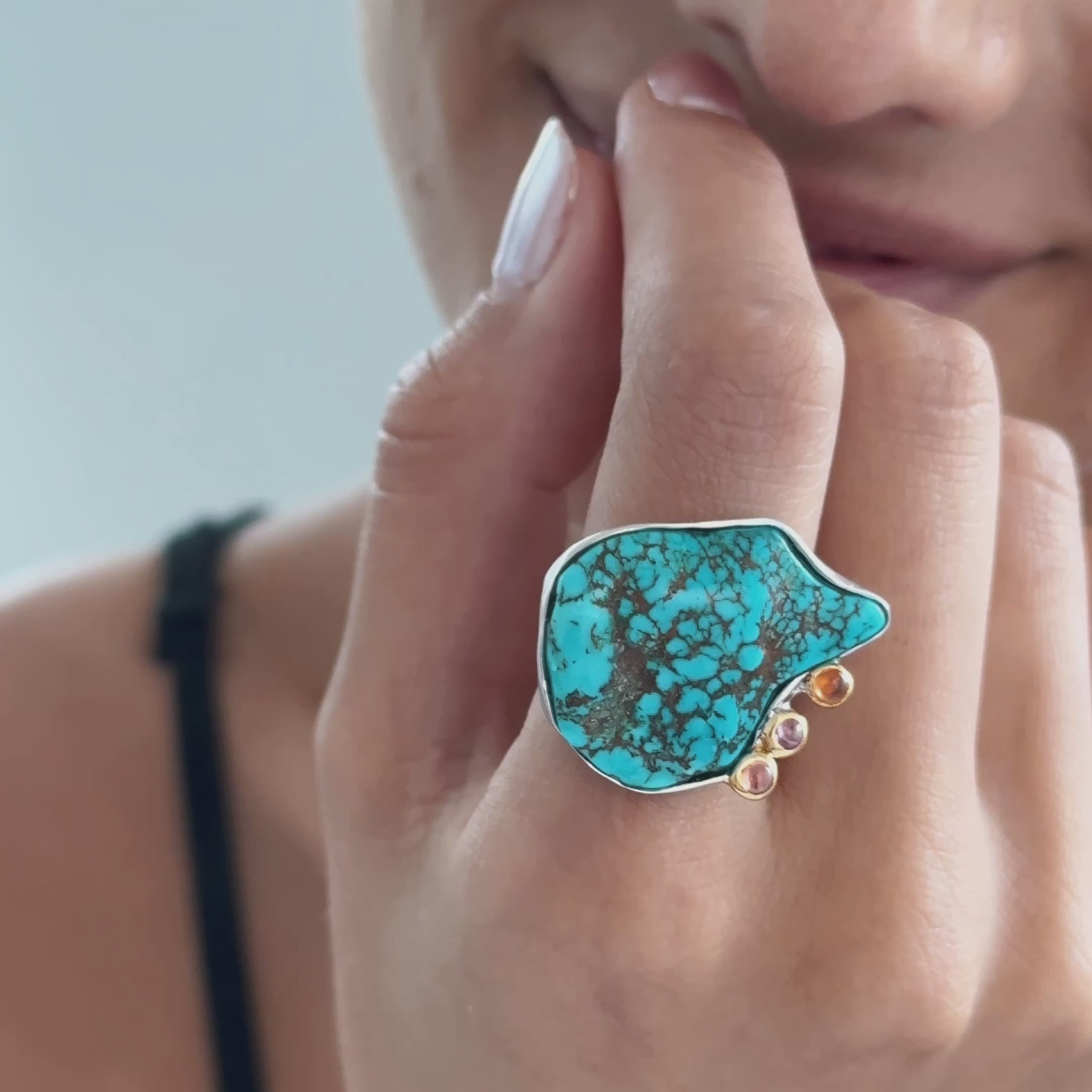 Aakash Rough Turquoise and Sapphire Ring