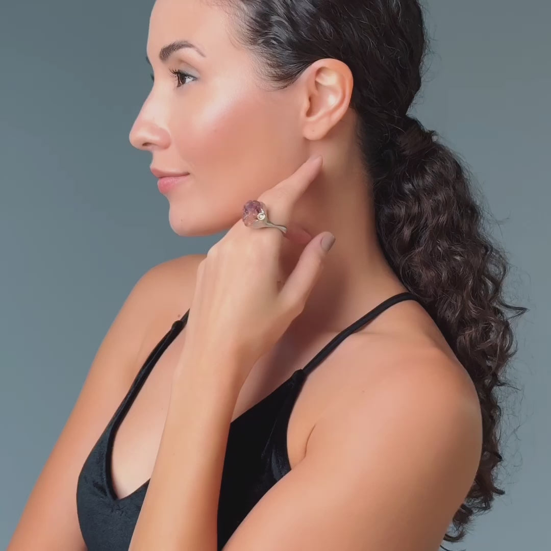 Alcuin Rough Ametrine and Sapphire Ring