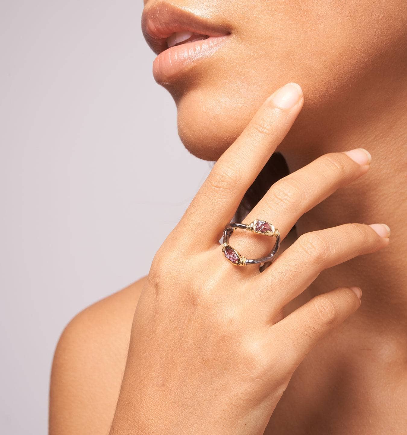 Dion Rough Rose Quartz and Rhodolite Garnet Ring Sale price $990.00
