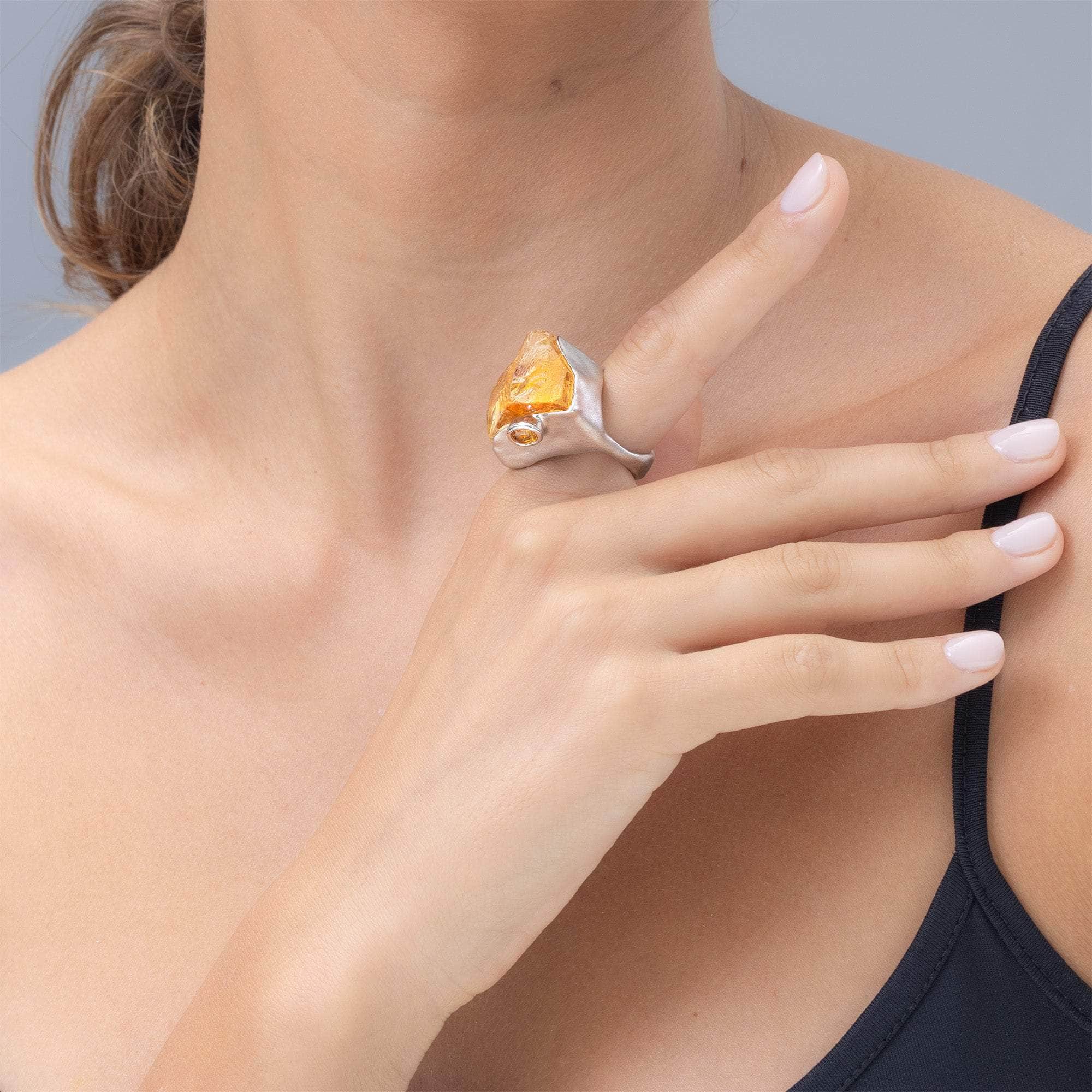 Saiph Singular Edition Statement Ring with Rough Citrine and Sapphire in 925 Silver