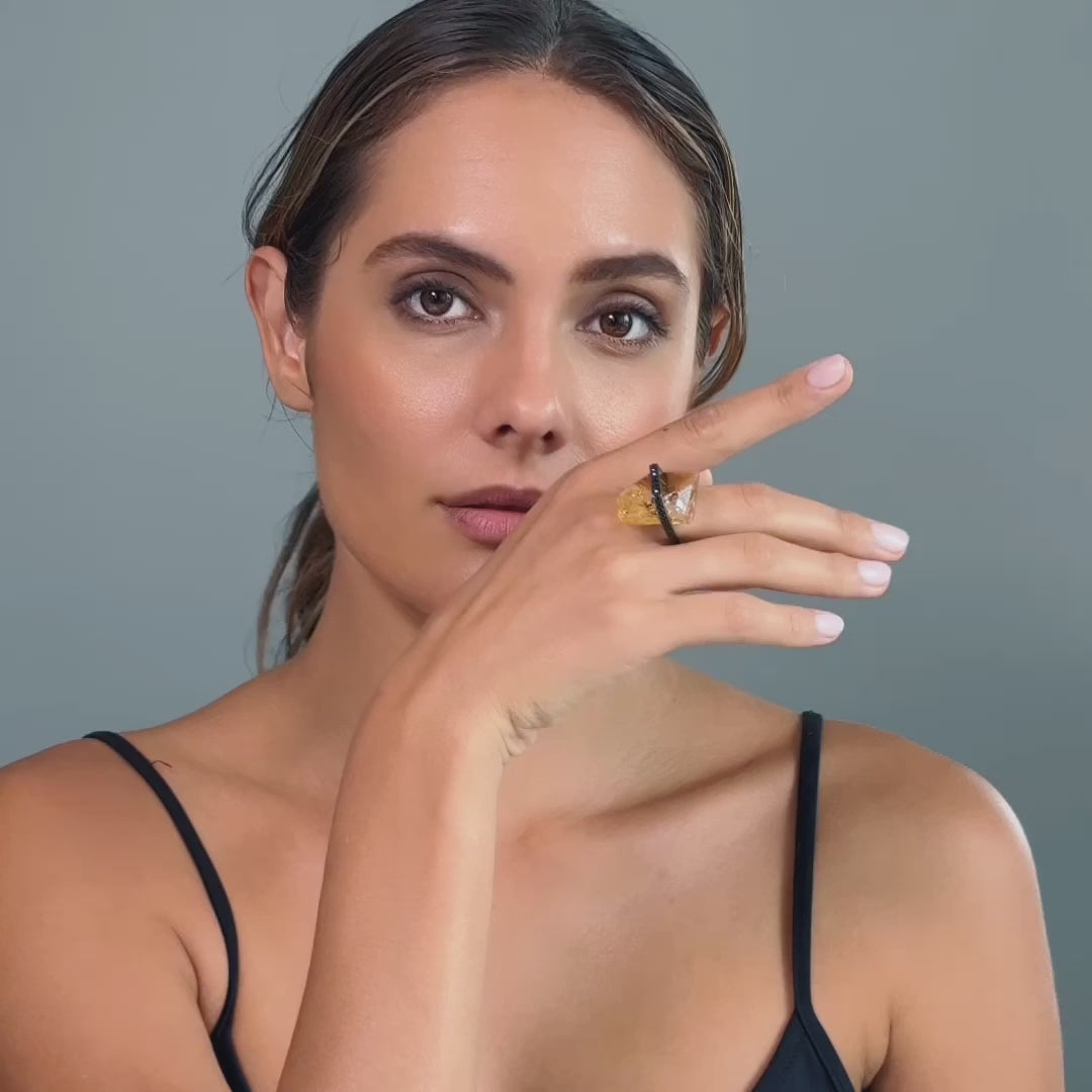 Shaula Award-Winning Rough Citrine and Black Spinel Ring in Ruthenium-Plated Silver
