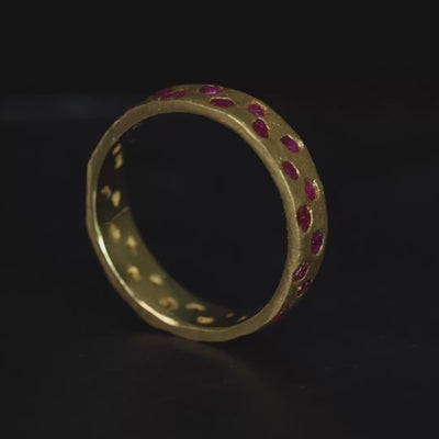 Cyrene Handmade Ring with Raw Ruby Crystals Fused into the 14K Gold Plated Sterling Silver Band