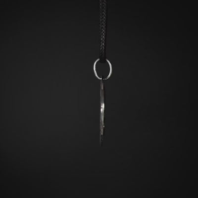 Dhara is a round pendant from the Morph Collection, made from 925 sterling silver with a deep oxidized finish. The surface features a sculpted half-skull relief, cut vertically to expose form and structure. It’s a minimalist expression of duality—life and decay, presence and absence—held in a single, balanced shape.