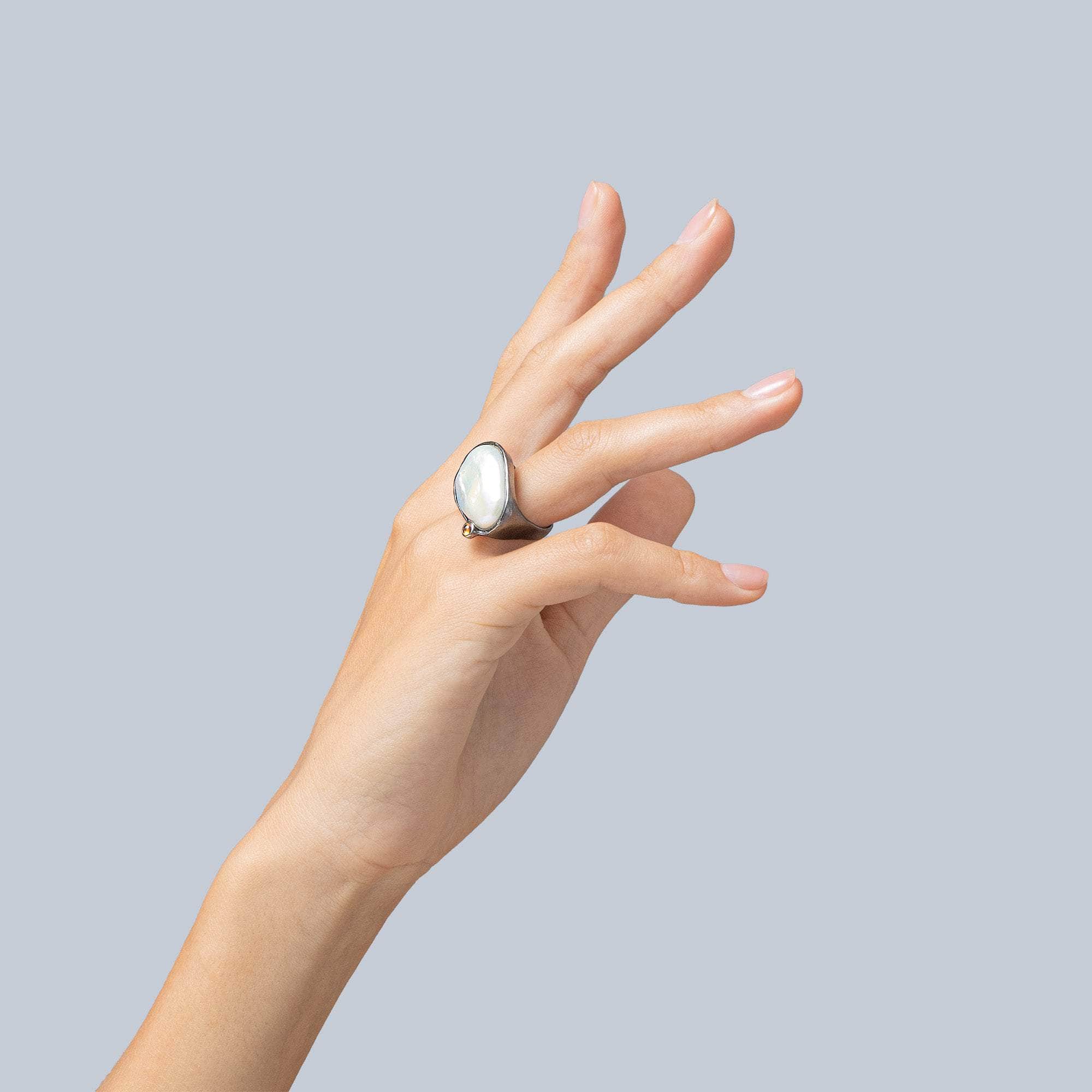 NOTE: This ring is handmade, so your piece might slightly differ from the picture, especially due to the irregular shape of the Baroque Pearl.
