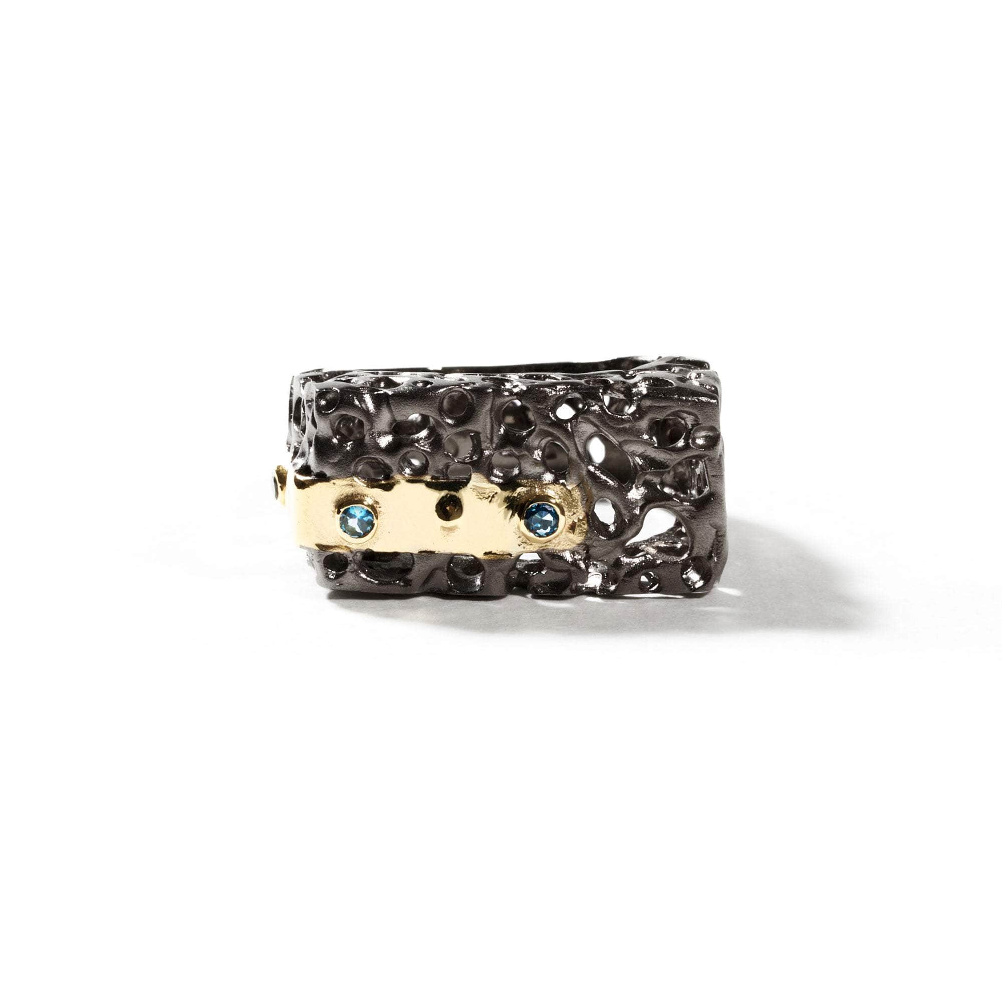 Luft Handcrafted London Blue Topaz Ring in Sterling Silver (Black & Gold)