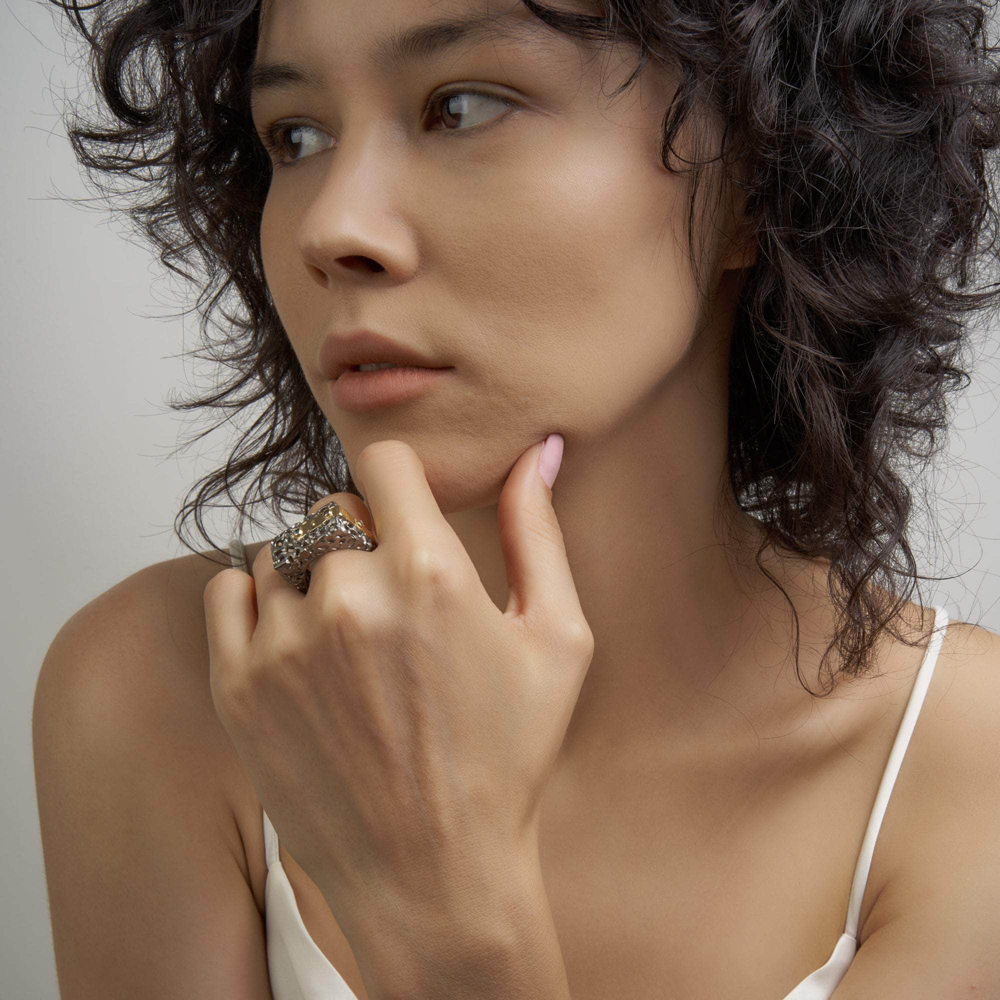 Is it a silver sponge or a silver pumice stone, maybe? Another mysterious German Kabirski metalwork texture with London blue topaz droplets on top.
