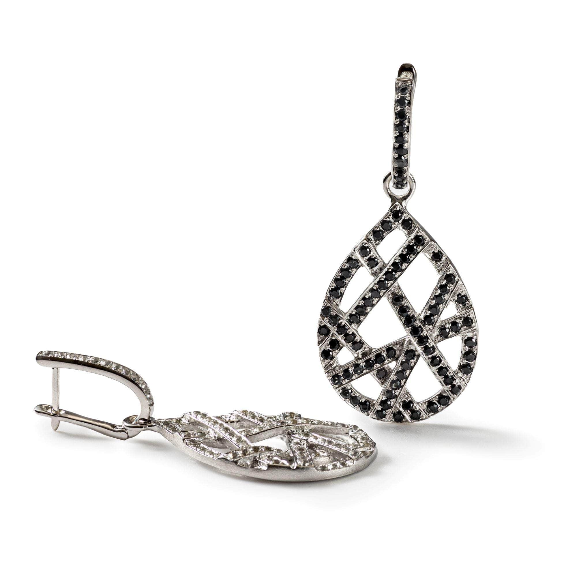Diafora White Topaz & Black Spinel Dangle Earrings in 925 Sterling Silver